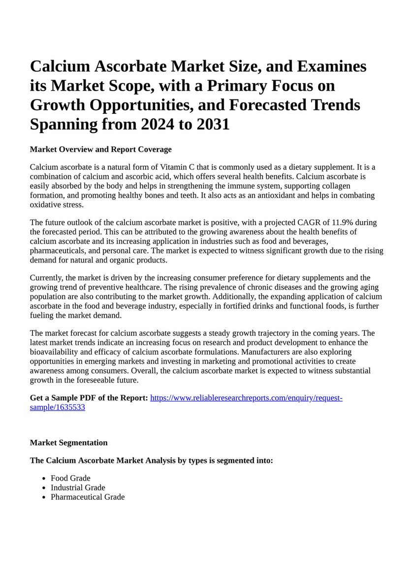 Source : www.linkedin.comReportprime Calcium Ascorbate Market Size, and Examines its
