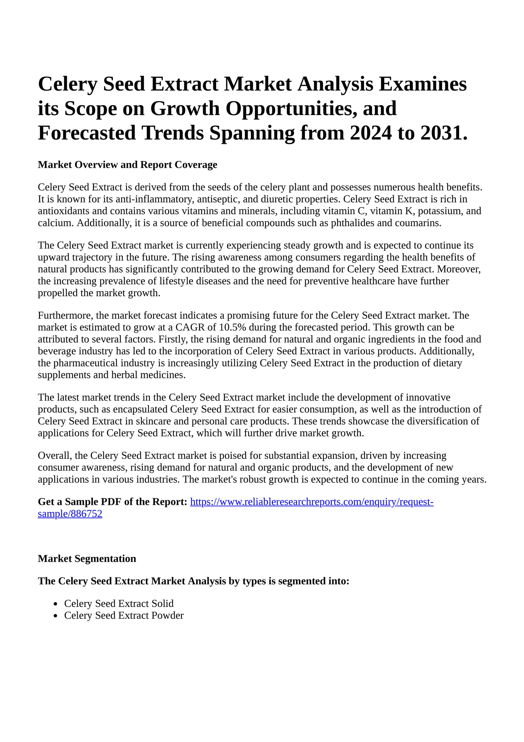 Source : www.linkedin.comReportprime Celery Seed Extract Market Analysis Examines its